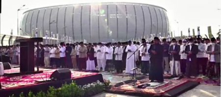 Shalat Id di JIS dilaksanakan di sisi barat, dan sebagian di sisi utara dan selatan JIS, dimulai pada pukul 07.00 WIB.