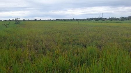 Akibat serangan hama tungro dan ulat, pertumbuhan tanaman padi tidak merata dan nampak kerdil serta sebagian besar duan tanaman padi nampak menguning.