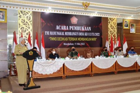 Pembukaan TMMD ke-113 Tahun 2022 di Batola ini ditandai penandatanganan berita acara kegiatan antara Kadis PUPR Batola Saberi Thannoor dan Komandan Kodim (Dandim) 1005 Batola Letkol Arm Ari Priyudono S.Sos MTr (Han) dilanjutkan dengan penyerahan alat kerja (toolkit) oleh Bupati Hj Noormiliyani AS kepada anggota TNI dan masyarakat secara simbolis.