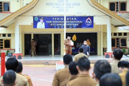 Menteri Komunikasi dan Informatika RI Johnny G. Plate yang dibacakan Plt Bupati HSU H Husairi Abdi bahwa peringatan Harkitnas sebagai bentuk seruan agar bisa bangkit bersama dari pandemi Covid-19 yang sudah melanda dua tahun terakhir.