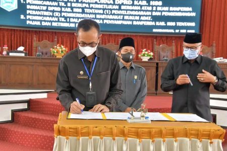 Kandangan, kalselpos.com – Dewan Perwakilan Rakyat Daerah (DPRD) Kabupaten Hulu Sungai Selatan (HSS) menerapkan dua Rancangan Peraturan Daerah (Ranperda) inisiatif menjadi Peraturan Daerah (Perda), Jumat (27/5), dalam rapat paripurna yang dipimpin Wakil I DPRD HSS Rodi Maulidi didampingi Wakil Ketua II DPRD HSS Muhammad Kusasi.