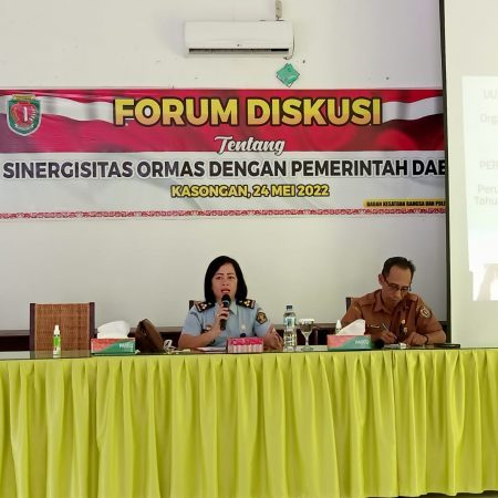 Kepala Kantor Wilayah Kementerian Hukum dan HAM melalui Kepala Bidang Hukum, Agustina Dayaleluni ketika menjadi pemateri dalam acara Forum Diskusi Ormas dengan Pemerintah Kabupaten Katingan, baru-baru ini.