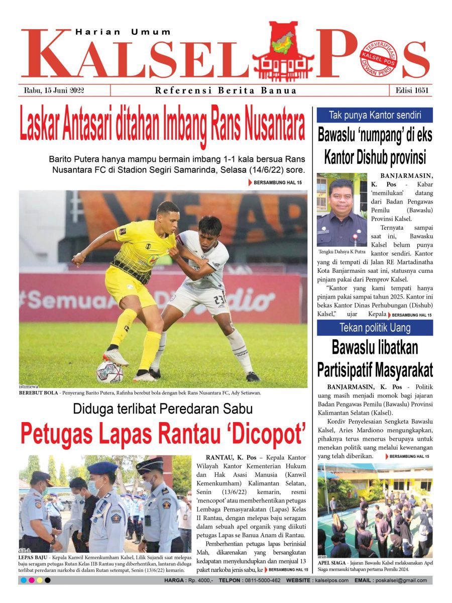 Laskar Antasari ditahan Imbang Rans Nusantara kalselpos14 Juni 202230 Maret 2025179 views Kalsel Pos Berita Terkini, Kabar Terbaru Hari ini Banjarmasin Kalimantan Selatan dan Nasional Pos terkaitTerkait Korupsi Dana Desa Rp657 juta, Eks Kades di Kusan Hilir divonis 3 TahunDireksi baru PAM Bandarmasih terbentuk, Zulbadi dipercaya jadi DirutParkir Pasar Wadai ‘mencekik’, Pengendara Motor ditagih Rp10 Ribu