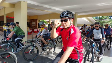 Batulicin,kalselpos.com–Polres Tanah Bumbu (Tanbu) menggelar olahraga sepeda gembira (Fun Bike) Serentak untuk memperingari Hari Ulang Tahun (HUT) Bhayangkara ke-76, Minggu (19/6/2022) pagi.