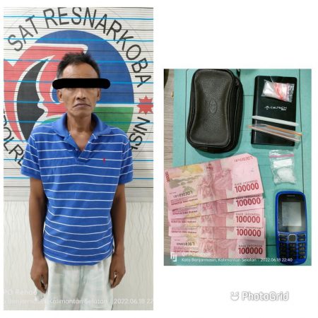 “Tersangka kami ‘ciduk’ atau ditangkap di rumahnya dengan barang bukti berupa satu paket sabu, dan satu timbangan digital, beserta beberapa bungkus klip sabu, dan sedotan yang dimodif sebagai sendok sabu, ” terang Kasat Narkoba Polresta Banjarmasin, Kompol Mars Suryo Kartiko, Senin (20/07/2022) siang.