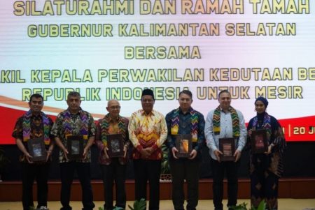 Banjarbaru,kalselpos.com – Suasana penuh kehangatan dan kekeluargaan mewarnai silaturahmi dan ramah tamah Gubernur Kalimantan Selatan (Kalsel) H Sahbirin Noor dengan Wakil Kepala Perwakilan Duta Besar Indonesia untuk Mesir, Muhammad Aji Surya beserta rombongan di Gedung Mahligai Pancasila, Senin (20/6/2022) malam.