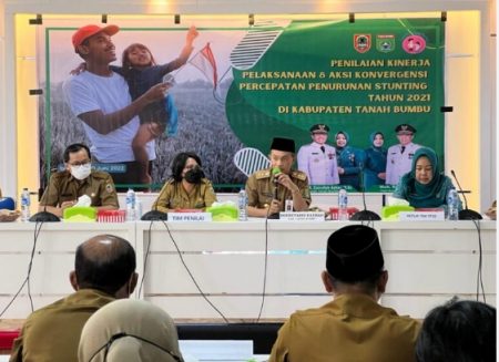 Batulicin, kalselpos.com – Pemerintah Kabupaten Tanah Bumbu (Tanbu) menerima kunjungan tim penilai Kinerja 8 Aksi Konvergensi Percepatan Penurunan Stunting Tahun 2021, di ruang rapat Bersujud, Kantor Bupati Tanbu, Senin (20/06/2022).