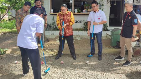 Kandangan, kalselpos.com – Pengurus Persatuan Gateball Seluruh Indonesia (Pergatsi) Kalimantan Selatan (Kalsel) memperkenalkan olahraga baru gateball dengan Wakil Bupati (Wabup) Hulu Sungai Selatan (HSS) dan Ketua Komite Olahraga Nasional (KONI) HSS Rahmad Hidayat, Kamis (23/6) di Kafe Kulaan, Kandangan.