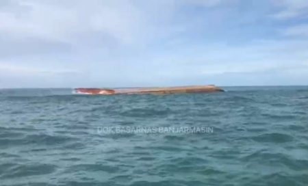 Saat ditemukan posisi bagian bawah kapal muncul ke permukaan (terbalik)di perairan laut Tanjung Selatan Kabupaten Tanah Laut Kalimantan Selatan. Sementara 6 ABK-nya, masih belum diketahui keberadaannya.