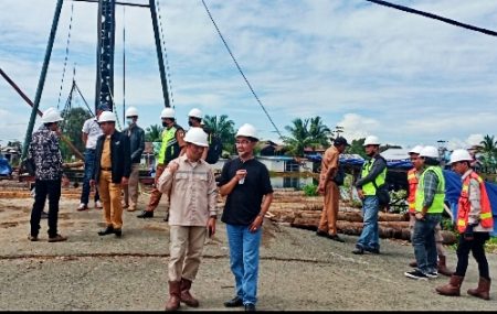 meninjau proyek pembangunan ulang Jembatan Mandastana yang tepatnya berada di wilayah Desa Bangkit Baru dan Desa Tanipah, Kecamatan Mandastana, Batola yang ambruk pada Agustus Tahun 2017 lalu.