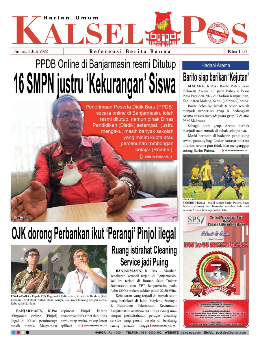 16 SMPN Kekurangan Siswa kalselpos1 Juli 202230 Maret 2025149 views Kalsel Pos Berita Terkini, Kabar Terbaru Hari ini Banjarmasin Kalimantan Selatan dan Nasional Pos terkaitTerkait Korupsi Dana Desa Rp657 juta, Eks Kades di Kusan Hilir divonis 3 TahunDireksi baru PAM Bandarmasih terbentuk, Zulbadi dipercaya jadi DirutParkir Pasar Wadai ‘mencekik’, Pengendara Motor ditagih Rp10 Ribu