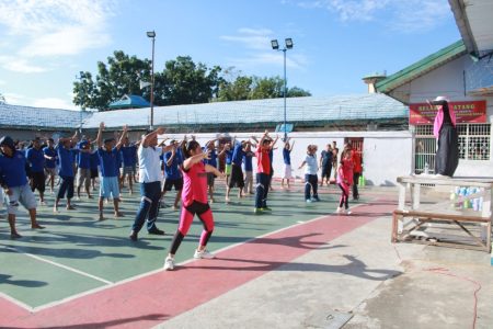 Amuntai, kalselpos.com -Lapas Amuntai datangkan instruktur senam, petugas dan WBP gelar senam bersama, Sabtu (02/07).