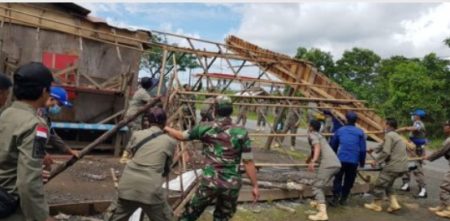 Pembongkaran dilakukan secara manual oleh petugas gabungan.