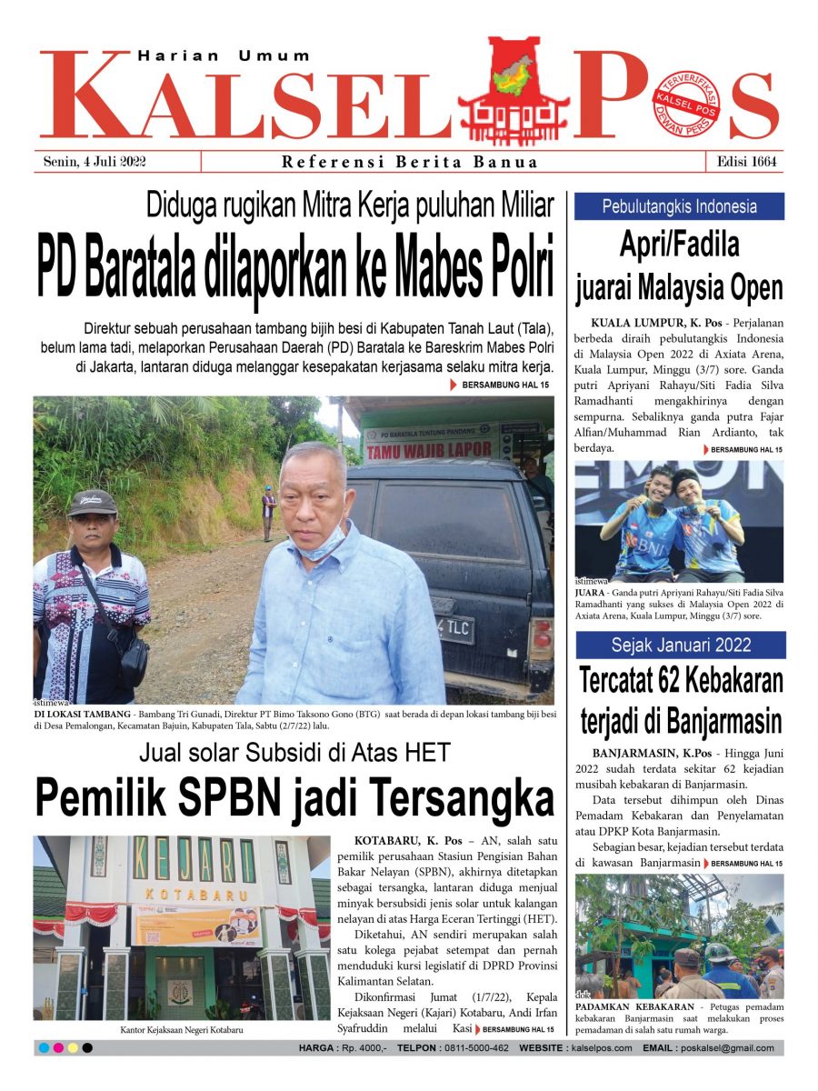 PD Baratala dilaporkan ke Mabes Polri kalselpos4 Juli 202230 Maret 2025250 views Kalsel Pos Berita Terkini, Kabar Terbaru Hari ini Banjarmasin Kalimantan Selatan dan Nasional Pos terkaitTerkait Korupsi Dana Desa Rp657 juta, Eks Kades di Kusan Hilir divonis 3 TahunDireksi baru PAM Bandarmasih terbentuk, Zulbadi dipercaya jadi DirutParkir Pasar Wadai ‘mencekik’, Pengendara Motor ditagih Rp10 Ribu