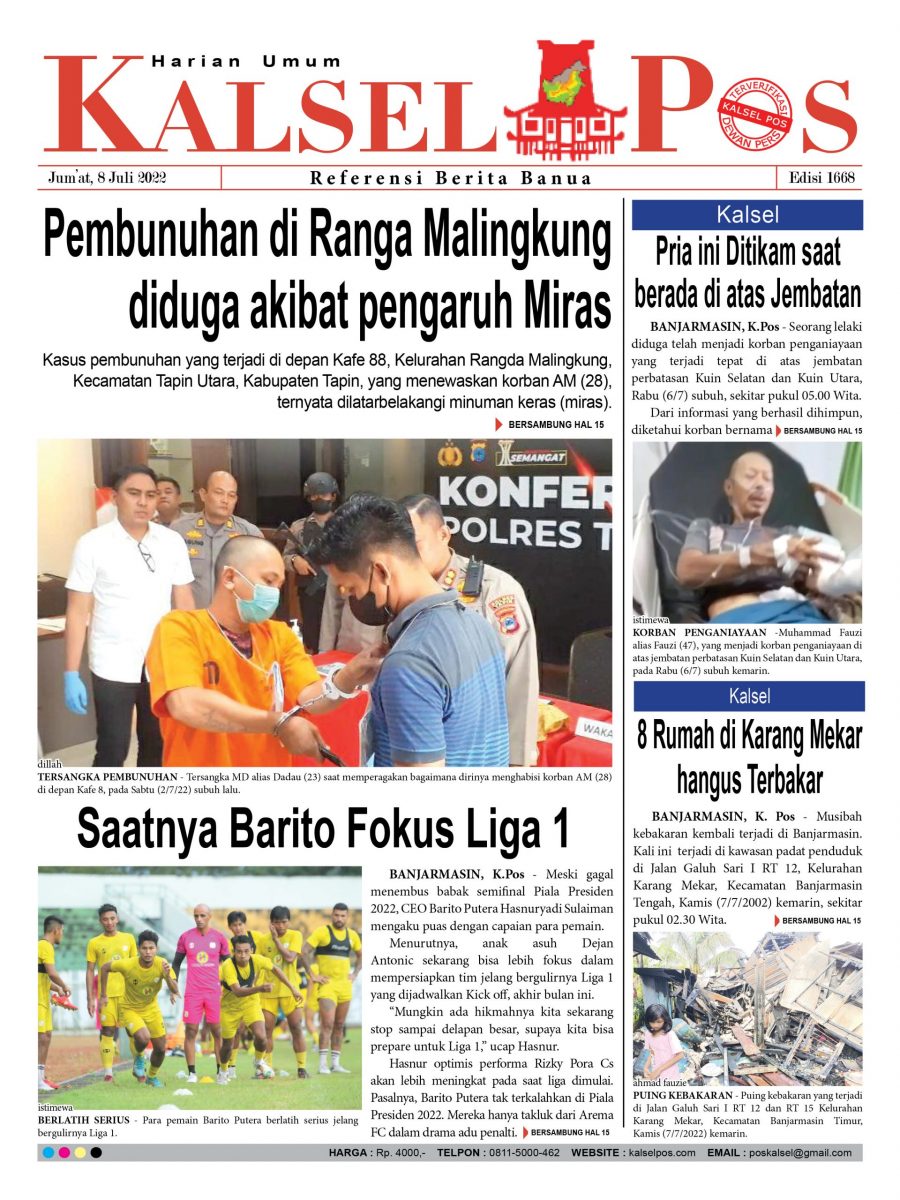 Pembunuhan di RangaMalingkung. Epaper Kalselpos 1668 kalselpos8 Juli 2022435 views Kalsel Pos Berita Terkini, Kabar Terbaru Hari ini Banjarmasin Kalimantan Selatan dan Nasional Pos terkaitTerkait Korupsi Dana Desa Rp657 juta, Eks Kades di Kusan Hilir divonis 3 TahunDireksi baru PAM Bandarmasih terbentuk, Zulbadi dipercaya jadi DirutParkir Pasar Wadai ‘mencekik’, Pengendara Motor ditagih Rp10 Ribu