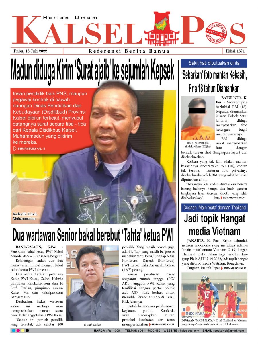Madun diduga Kirim ‘Surat ajaib’ ke sejumlah Kepsek kalselpos13 Juli 202230 Maret 2025239 views Kalsel Pos Berita Terkini, Kabar Terbaru Hari ini Banjarmasin Kalimantan Selatan dan Nasional Pos terkaitTerkait Korupsi Dana Desa Rp657 juta, Eks Kades di Kusan Hilir divonis 3 TahunDireksi baru PAM Bandarmasih terbentuk, Zulbadi dipercaya jadi DirutParkir Pasar Wadai ‘mencekik’, Pengendara Motor ditagih Rp10 Ribu