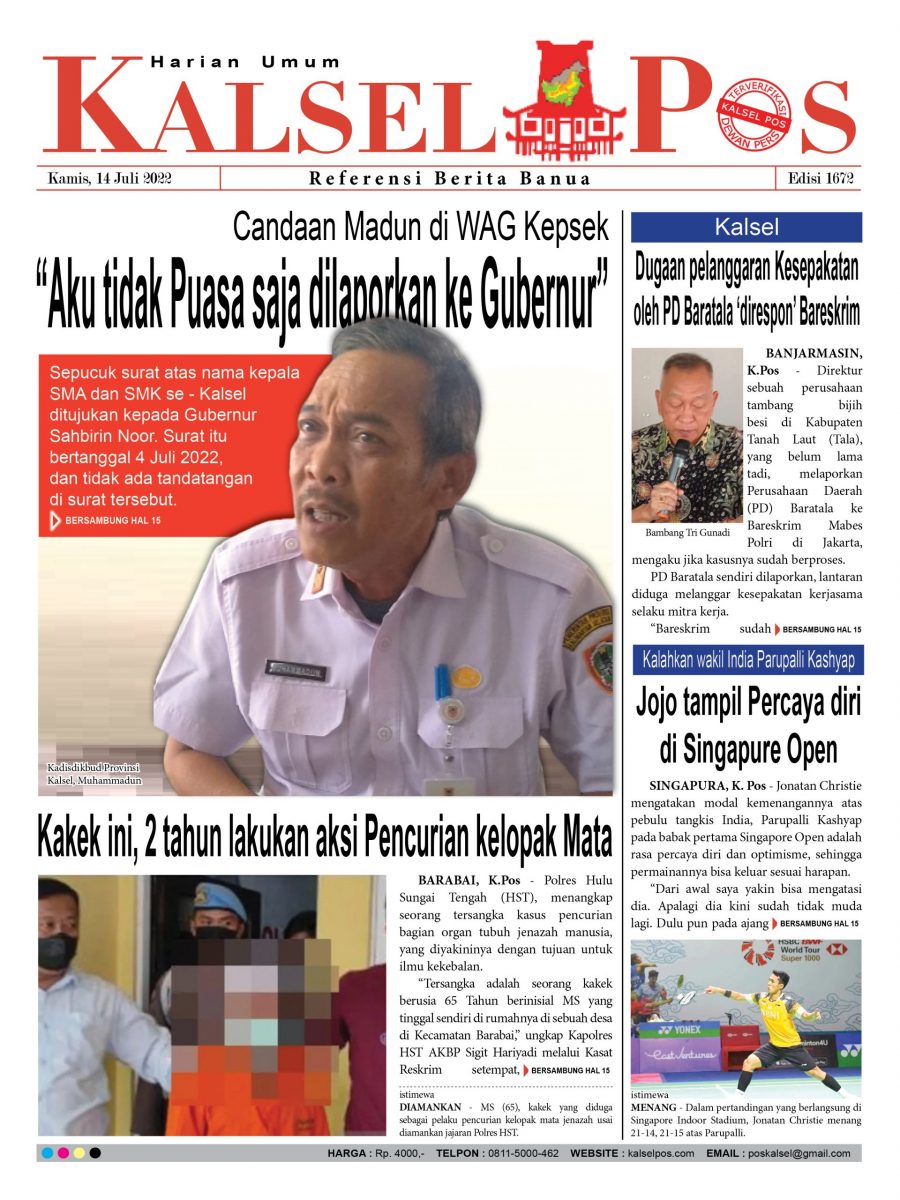 Aku tidak Puasa saja dilaporkan ke Gubernur kalselpos14 Juli 202230 Maret 2025137 views Kalsel Pos Berita Terkini, Kabar Terbaru Hari ini Banjarmasin Kalimantan Selatan dan Nasional Pos terkaitTerkait Korupsi Dana Desa Rp657 juta, Eks Kades di Kusan Hilir divonis 3 TahunDireksi baru PAM Bandarmasih terbentuk, Zulbadi dipercaya jadi DirutParkir Pasar Wadai ‘mencekik’, Pengendara Motor ditagih Rp10 Ribu