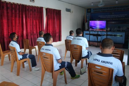 Petugas Lapas Amuntai ikuti secara Virtual melalui aplikasi zoom meeting, di Aula II Lapas, Jumat (15/7).