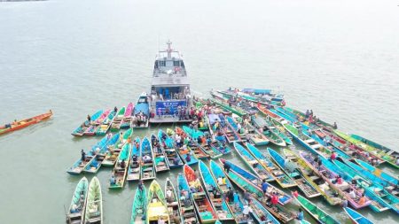 “Ada Sebanyak 300 paket sembako dibagikan untuk berbagai kelompok nelayan yang ada, dimana sebelumnya sudah didata oleh Babinpotmar Lanal Kotabaru,” tutur Danlanal.
