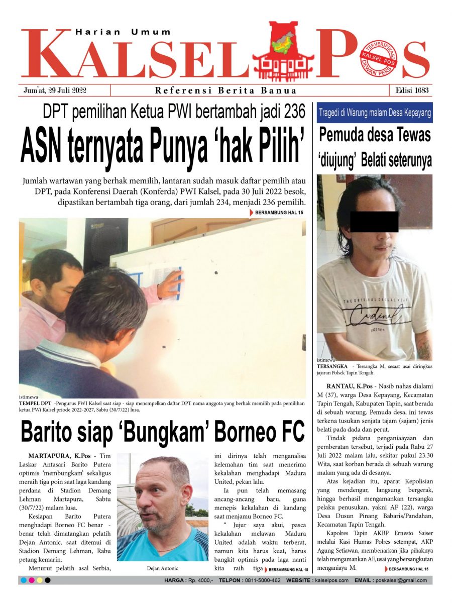 DPT pemilihan Ketua PWI bertambah jadi 236 kalselpos29 Juli 202230 Maret 2025129 views Kalsel Pos Berita Terkini, Kabar Terbaru Hari ini Banjarmasin Kalimantan Selatan dan Nasional Pos terkaitTerkait Korupsi Dana Desa Rp657 juta, Eks Kades di Kusan Hilir divonis 3 TahunDireksi baru PAM Bandarmasih terbentuk, Zulbadi dipercaya jadi DirutParkir Pasar Wadai ‘mencekik’, Pengendara Motor ditagih Rp10 Ribu