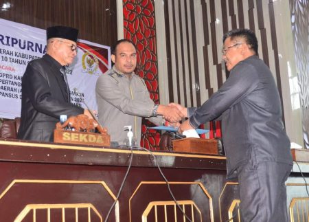 “Pemerintah daerah juga mengucapkan terimakasih, kepada panitia khusus (Pansus) DPRD yang mana sudah melakukan pembahasan terhadap dua buah Rancangan Peraturan Daerah (Raperda) yaitu, Raperda tentang penyelenggaraan perumahan dan kawasan pemukiman dan Raperda tentang perubahan atas peraturan daerah nomor 04 tahun 2012 tentang retribusi perizinan tertentu,” tutupnya.
