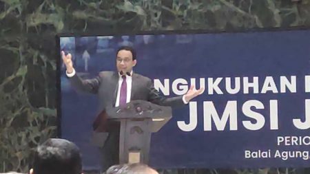 “Izinkan dalam kesempatan ini mengucapkan selamat kepada jajaran pengurus JMSI Jakarta yang baru saja dilantik,” kata Anies saat memberikan sambutan.