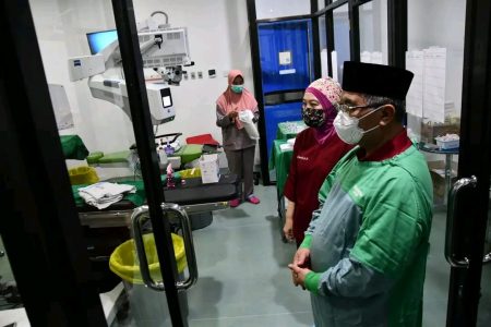 Kandangan,kalselpos.com – Bupati Hulu Sungai Selatan (HSS) Achmad Fikry didampingi Kepala Dinas Kesehatan dr Zainab meninjau pelaksanaan operasi katarak gratis, yang digelar di Rumah Sakit Umum Daerah (RSUD) Brigjend Hasan Basry Kandangan, Kamis (11/8).