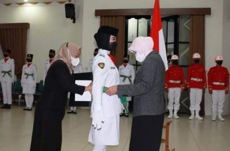 Pengukuhan ini juga diisi mengheningkan cipta yang dipimpin Bupati Hj Noormiliyani AS.