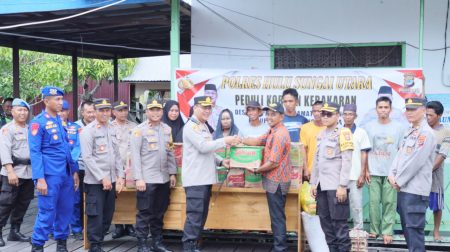 Kapolres HSU yang baru betugas tersebut sekaligus melakukan kunjungan silaturahmi ke masyarakat, sekaligus memberikan bantuan sosial, berupa paket sembako, Kamis (18/8).