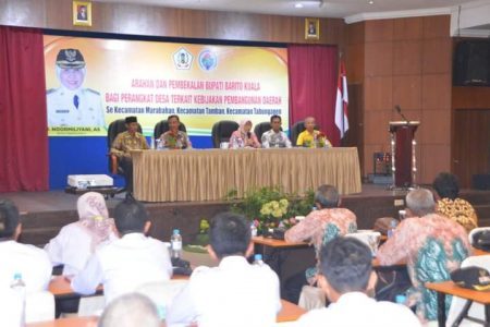 Marabahan, kalselpos.com – Bupati Kabuaten Barito Kuala Hj. Noormiliyani AS berikan arahan dan pembekalan bagi Kades dan perangkat desa di tiga kecamatan, yakni Kecamatan Marabahan, Tamban dan Tabunganen.