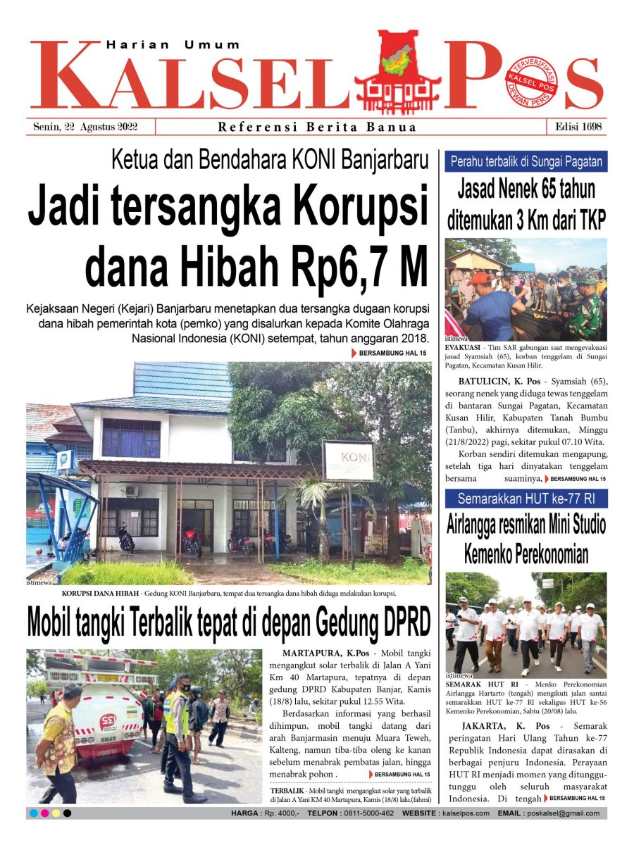 Korupsi dana Hibah Rp6,7 M, KONI Banjarbaru kalselpos22 Agustus 202230 Maret 2025315 views Kalsel Pos Berita Terkini, Kabar Terbaru Hari ini Banjarmasin Kalimantan Selatan dan Nasional Pos terkaitTerkait Korupsi Dana Desa Rp657 juta, Eks Kades di Kusan Hilir divonis 3 TahunDireksi baru PAM Bandarmasih terbentuk, Zulbadi dipercaya jadi DirutParkir Pasar Wadai ‘mencekik’, Pengendara Motor ditagih Rp10 Ribu
