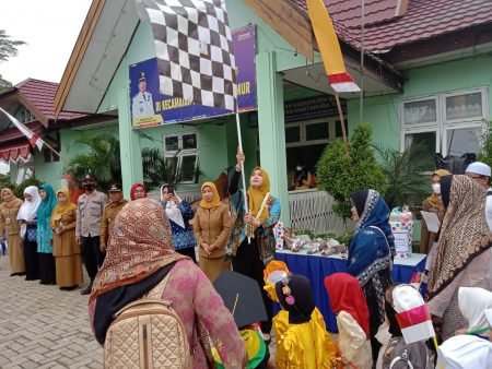 Martapura, kalselpos.com– Mengenakan berbagai kostum, mulai dari baju adat hingga aneka profesi, 484 anak dan 71 guru dari 16 Lembaga Kelompok Bermain se Kecamatan Martapura Timur ikuti Karnaval Budaya dalam rangka memeriahkan HUT ke 77 Kemerdekaan RI dan Hari Jadi ke 72 Kabupaten Banjar di Halaman Kantor Kecamatan Martapura Timur, Senin ( 29/8) pagi.