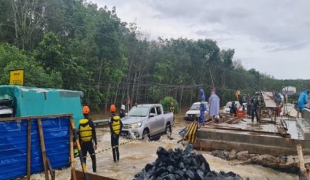 Batulicin, kalselpos.com -Pengendara kendaraan bermotor yang melintas di jalan provinsi di Kecamatan Angsana, Kabupaten Tanah Bumbu (Tanbu) diimbau untuk berhati-hati karena meluapnya Sungai Nibung.