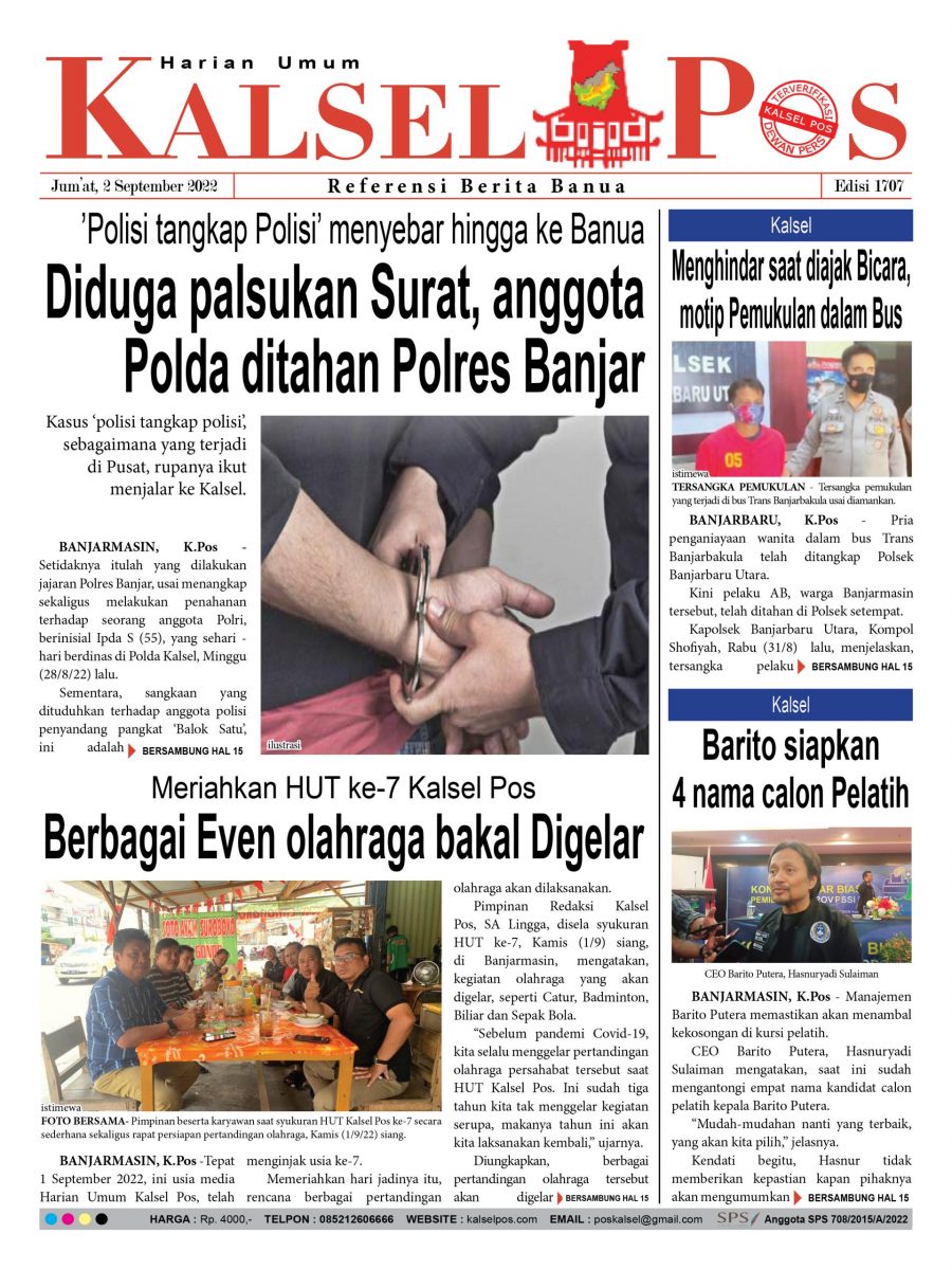 Anggota Polda ditahan Polres Banjar. Epaper Kalselpos 1707 kalselpos2 September 202222 Maret 2025126 views Kalsel Pos Berita Terkini, Kabar Terbaru Hari ini Banjarmasin Kalimantan Selatan dan Nasional Pos terkaitTerkait Korupsi Dana Desa Rp657 juta, Eks Kades di Kusan Hilir divonis 3 TahunDireksi baru PAM Bandarmasih terbentuk, Zulbadi dipercaya jadi DirutParkir Pasar Wadai ‘mencekik’, Pengendara Motor ditagih Rp10 Ribu