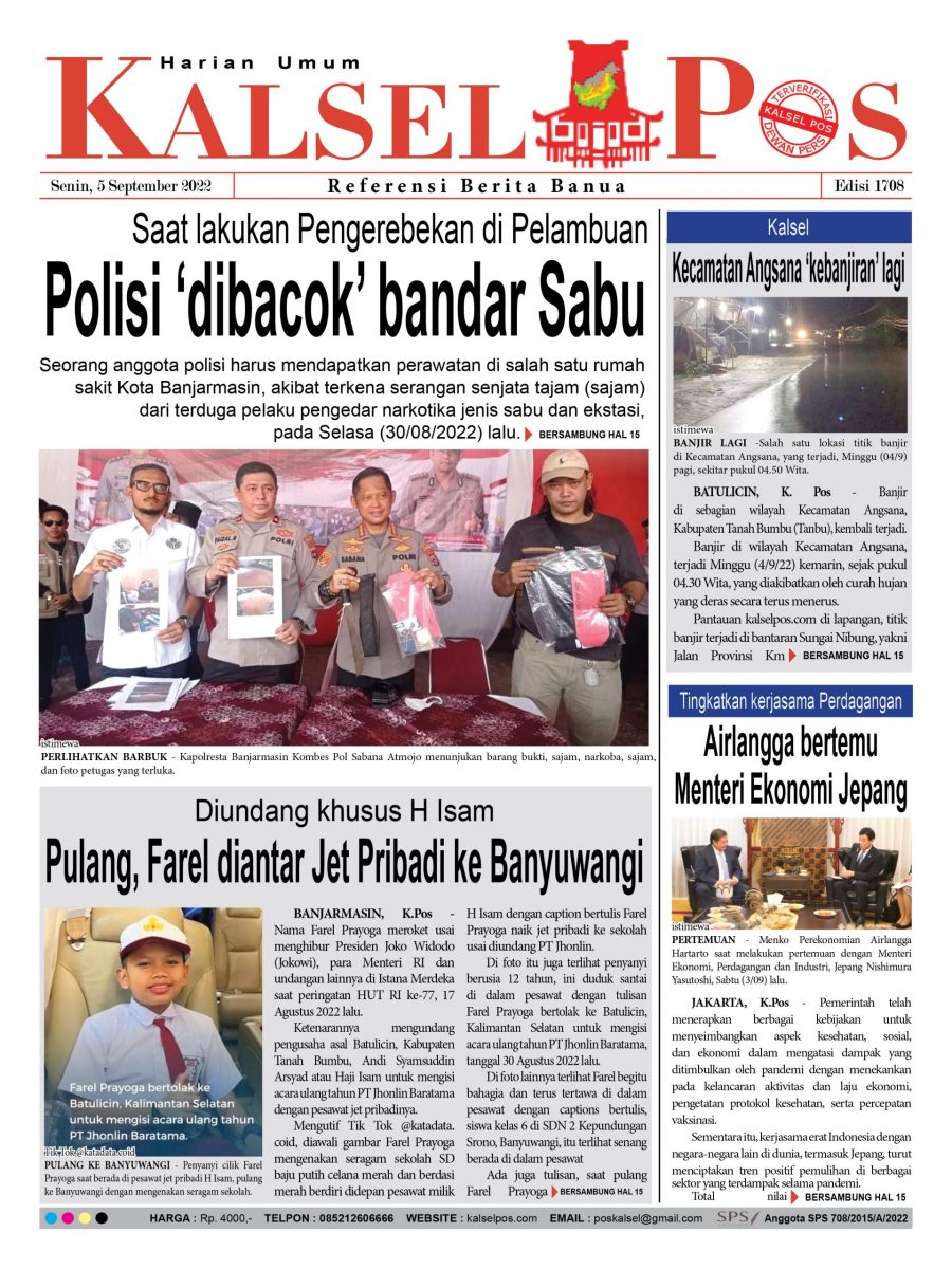 Polisi dibacok bandar Sabu. Epaper Kalselpos 1708 kalselpos5 September 202222 Maret 2025213 views Kalsel Pos Berita Terkini, Kabar Terbaru Hari ini Banjarmasin Kalimantan Selatan dan Nasional Pos terkaitTerkait Korupsi Dana Desa Rp657 juta, Eks Kades di Kusan Hilir divonis 3 TahunDireksi baru PAM Bandarmasih terbentuk, Zulbadi dipercaya jadi DirutParkir Pasar Wadai ‘mencekik’, Pengendara Motor ditagih Rp10 Ribu