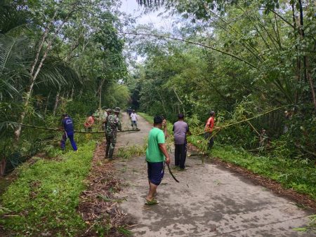 Amuntai, kalselpos.com – Warga bersama Babinsa dari Koramil 07 Amuntai Tengah, Kodim 1001 Kabupaten Hulu Sungai Utara (HSU) bersihkan jalur akses desa.