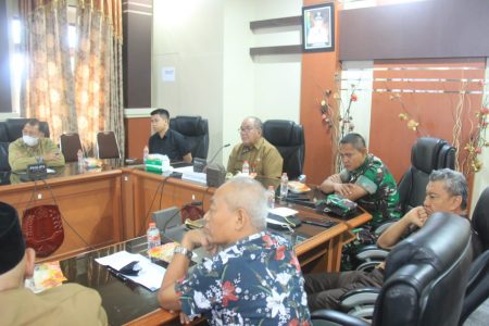 Rakor bersama seluruh unsur pimpinan daerah, TNI-Polri, anggota DPRD setempat, para camat, mahasiswa, LSM serta ketua Persatuan Kades se-HSU di ruang rapat gedung Arsip lantai II Setda HSU, Senin (5/9).