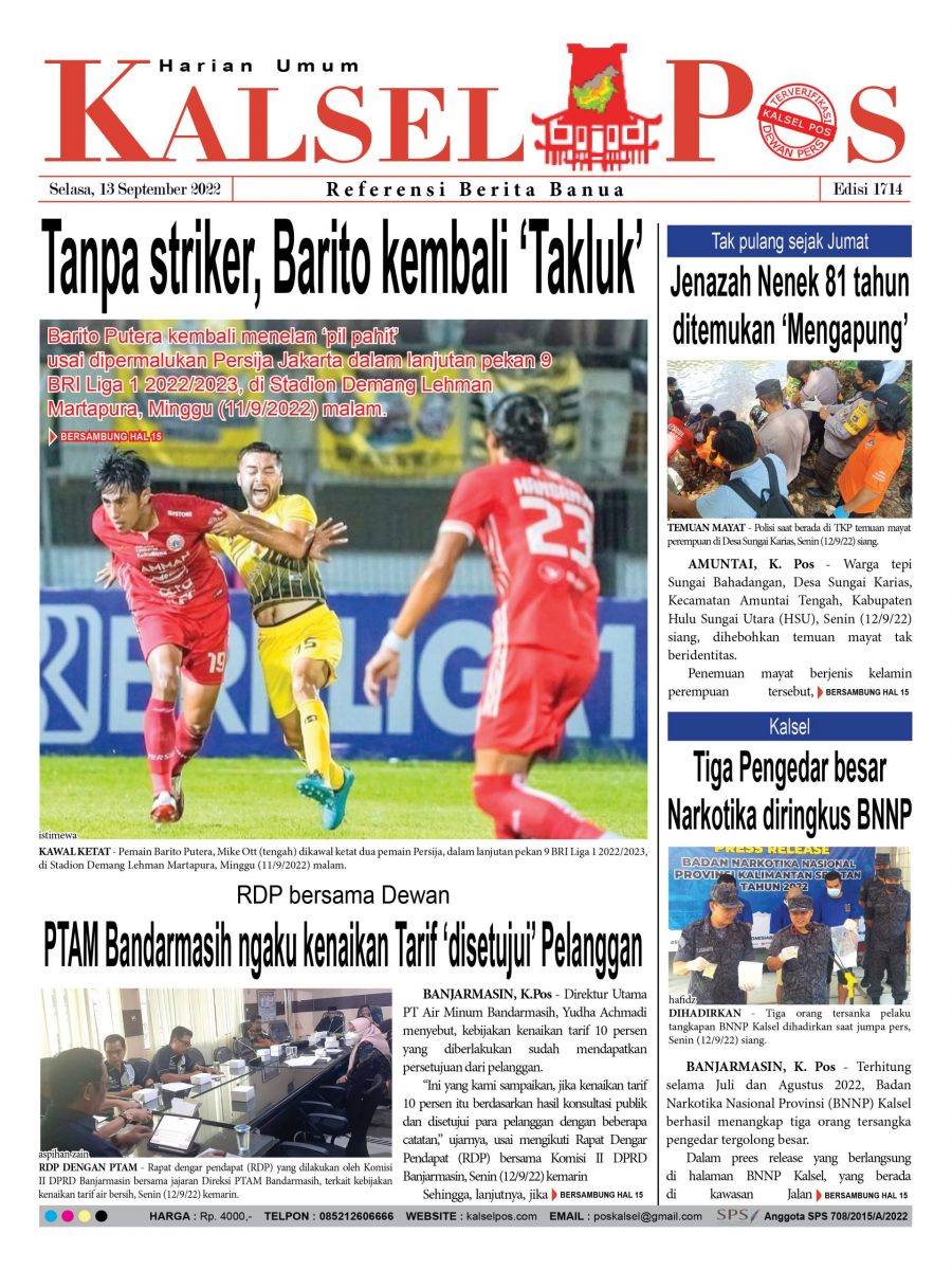 Tanpa striker, Barito kembali Takluk. Epaper Kalselpos 1714 kalselpos13 September 202222 Maret 2025128 views Kalsel Pos Berita Terkini, Kabar Terbaru Hari ini Banjarmasin Kalimantan Selatan dan Nasional Pos terkaitTerkait Korupsi Dana Desa Rp657 juta, Eks Kades di Kusan Hilir divonis 3 TahunDireksi baru PAM Bandarmasih terbentuk, Zulbadi dipercaya jadi DirutParkir Pasar Wadai ‘mencekik’, Pengendara Motor ditagih Rp10 Ribu