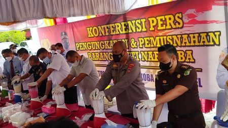 Banjarmasin, kalselpos.com – Dalam rentang waktu bulan Juli sampai September 2022, ini Direktorat Reserse Narkoba (Ditresnarkoba) Polda Kalsel, berhasil mengungkap kasus peredaran narkotika, berupa 26 Kg lebih sabu dan pil Ineks atau pil ekstasi sebanyak 3.429 butir, dengan tersangka sebanyak 62 orang.