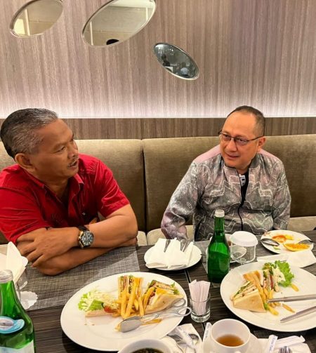 BERBINCANG -Ketua Forkot Banjarmasin, Sy Nisfuady SH (kiri) saat berbincang dengan Dirut PDAM Bandarmasih, Ir Yudha Achmady.