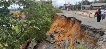 Batulicin, kalselpos.com – Hujan deras melanda beberapa wilayah di Kabupaten Tanah Bumbu (Tanbu), beberapa hari ke belakang, termasuk di Kecamatan Satui, mengakibatkan amblas alias longsor, tepatnya di Jalan Nasional KM 171, Desa Satui Barat, pada Rabu (28/9/22) dini hari, sekitar pukul 00.30 Wita.