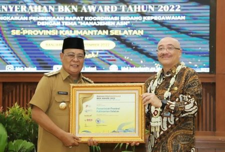 Banjarbaru,kalselpos.com – Pemerintah Provinsi Kalimantan Selatan (Kalsel) menerima dua Penghargaan dari Badan Kepegawaian Negara atau BKN Award 2022 untuk kategori Implementasi Manajemen ASN Terbaik dan Peringkat Ketiga atas capaian dalam Implementasi Penerapan Manajemen Kinerja.