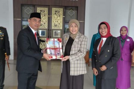 Bupati menyerahkan GDPK didampingi Kepala Dinas Pengendalian Penduduk, Keluarga Berencana, Pemberdayaan Perempuan dan Perlindungan Anak (DPPKBP3A) Hj Harliani, sebagai bahan acuan dalam perencanaan pembangunan kependudukan dalam kerangka pembangunan berkelanjutan.