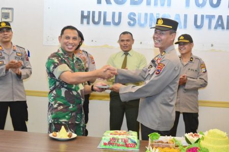 Amuntai, kalselpos.com – Momentum Peringatan Hari Ulang Tahun (HUT) TNI ke-77. Jajaran Kodim 1001 HSU-Balangan mendapatkan kejutan dari Polres HSU.
