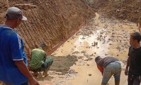 Masyarakat masih semangat bersinergi dengan personil satgas TMMD untuk mempercepat pembangunan infrastruktur seperti pembangunan jalan dan pembuatan jembatan box culvert.