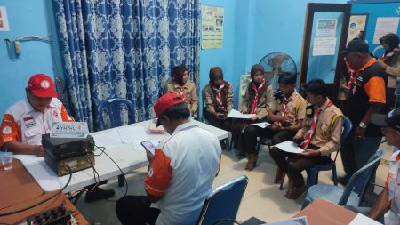 Ratusan anak-anak Pramuka turut menjadi peserta yang digelar Kwartir Cabang Pramuka (Kwarcab) Kabupaten Hulu Sungai Utara (HSU) bersama Orari Lokal Kabupaten HSU di Media Center Sekda HSU. Jumat, (14/10).