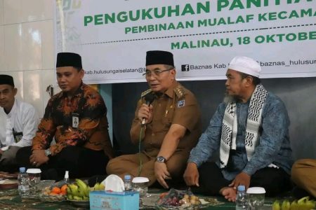 Kandangan,kalselpos.com – Bupati Hulu Sungai Selatan (HSS) Achmad Fikry menghadiri pengukuhan panitia dan pembinaan Mualaf, di Masjid Al Anwar Desa Malinau, Kecamatan Loksado, Rabu (18/10).