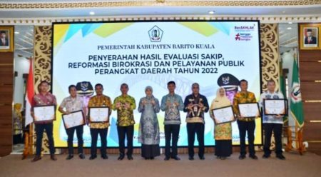 Bupati Batola Hj Noormiliyani AS menyambut baik kegiatan penyerahan yang dilaksanakan. Mengingat, melalui evaluasi ini dapat terlihat apa yang sudah dan belum dilaksanakan dalam pelaksanaan reformasi birokrasi dan pelayanan publik.