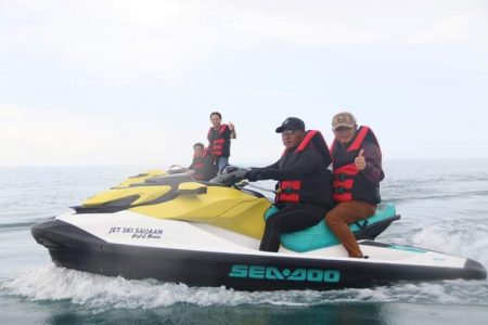 Wisata Gosong Bangau yang ada di Kecamatan Pulau Laut Timur menjadi tujuan utama Bupati dalam memperkenalkan wisata lautnya dan bermain jet Ski bersama.