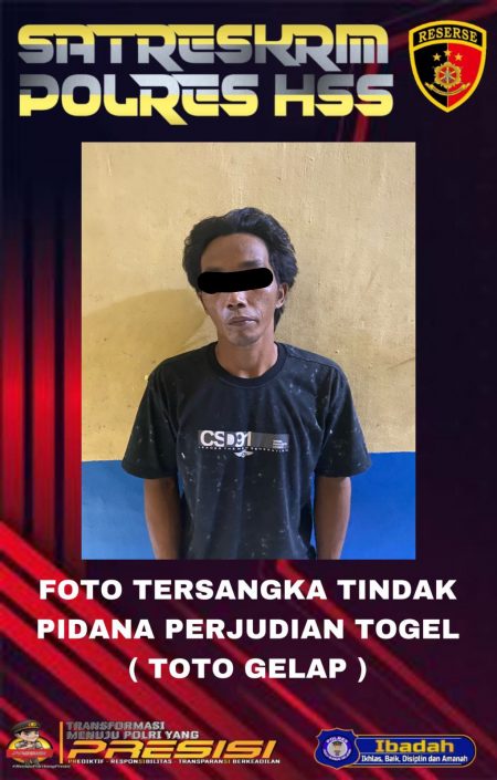 Kandangan, kalselpos.com – Tim Gabungan Pers Unit Opsnal Satreskrim, Polres Hulu Sungai Selatan mengamankan seorang warga Desa Sungai Paring, Kecamatan Kandangan, Kabupaten HSS, diduga pelaku tindak pidana perjudian togel, Senin (24/10) sekitar pukul 21.30 WITA.